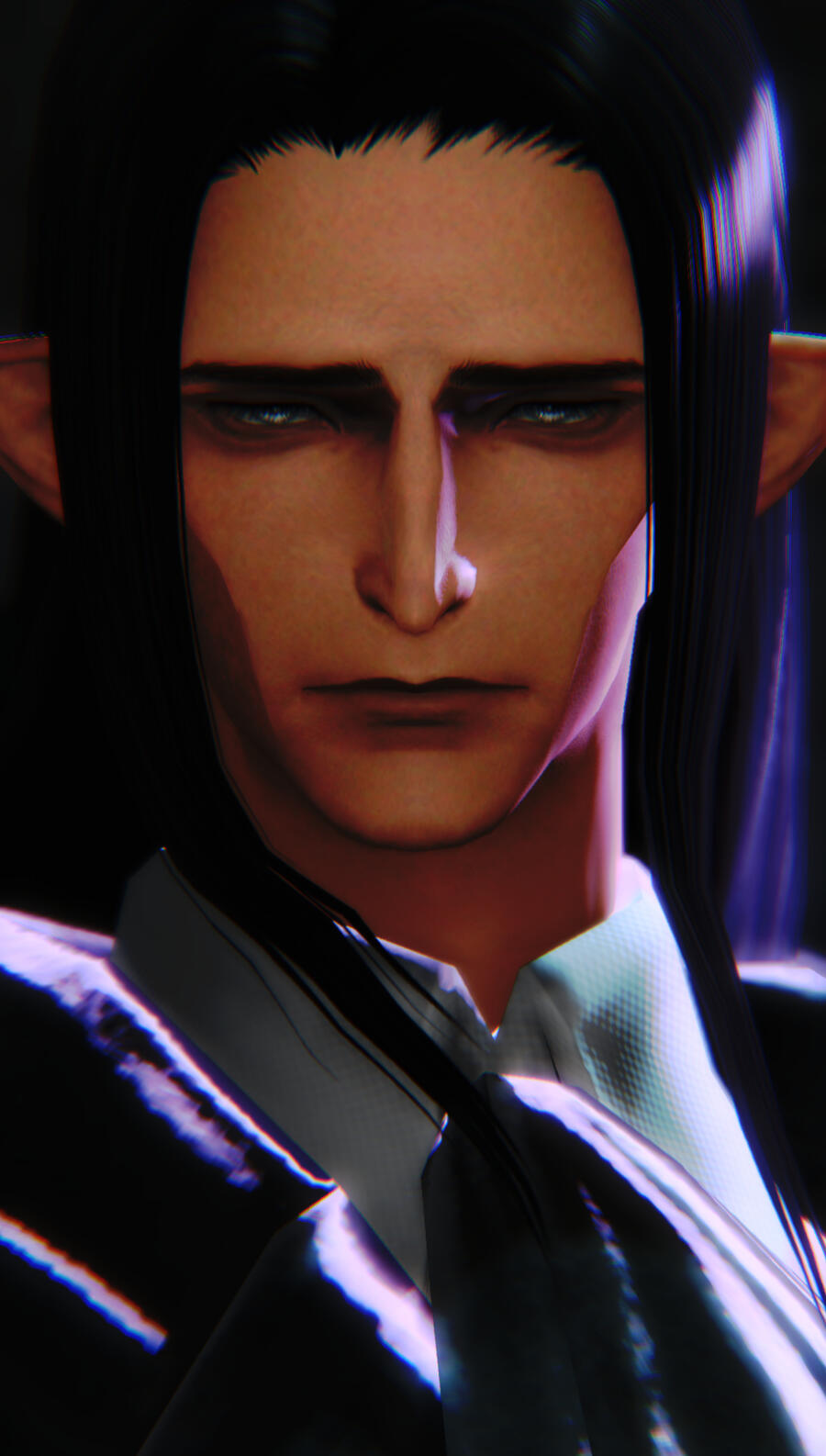 Standing before you is a tall, pallid elezen with a stone-faced countenance. His eyes shine eerily like the face of the moon as they regard you in silence. Wearing the garb of a commoner, one might assume that is all he is—