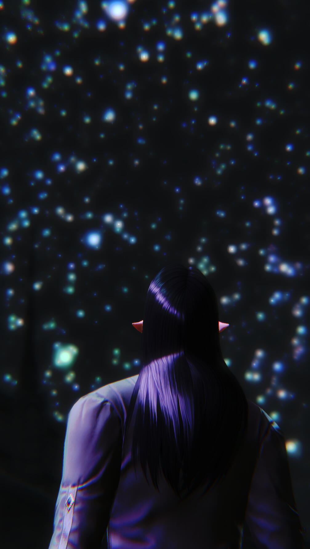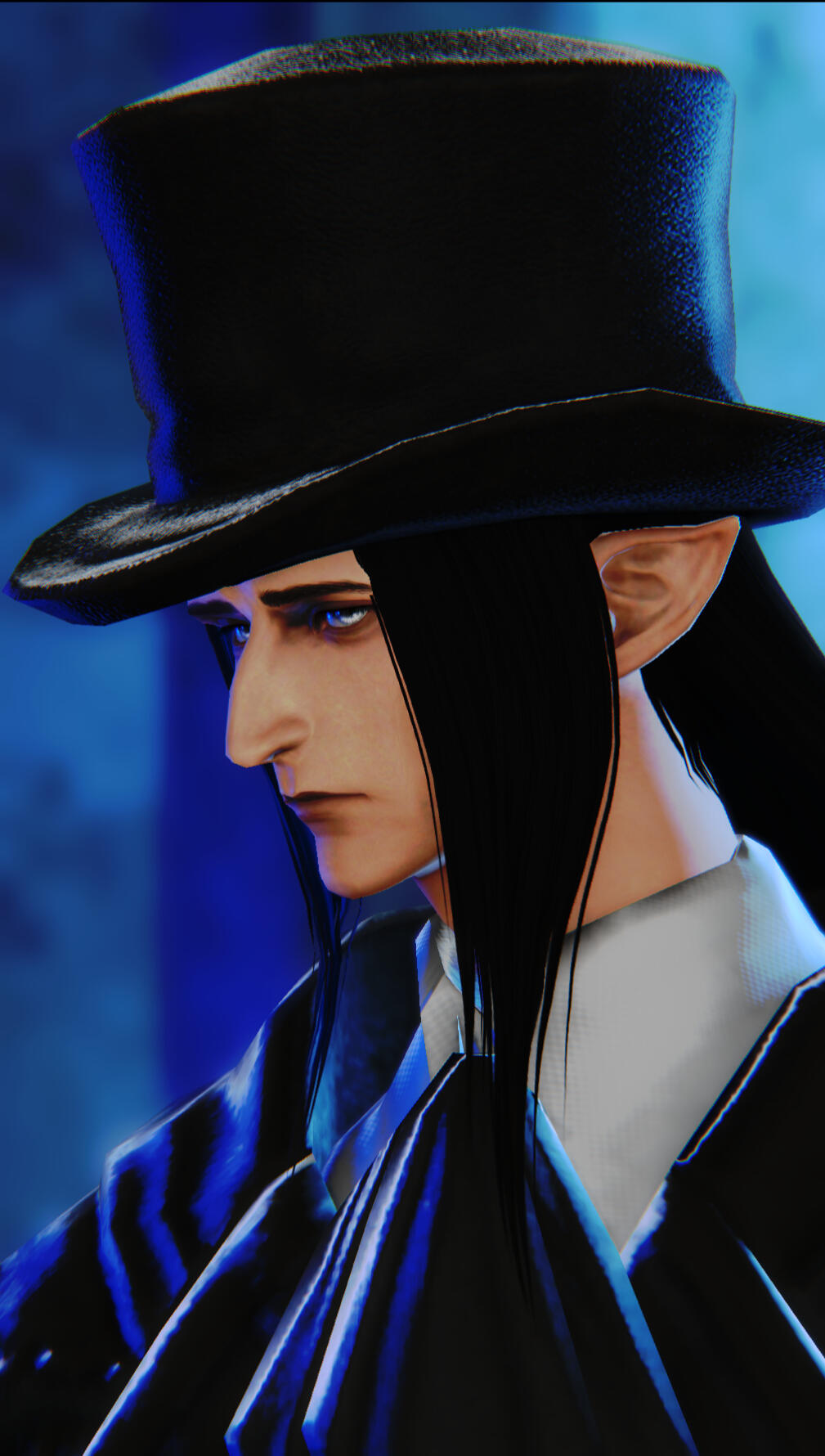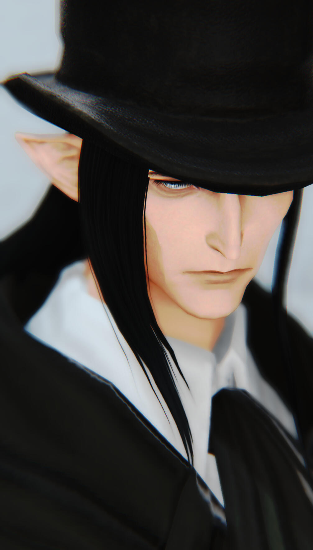 Standing before you is a tall, pallid elezen with a stone-faced countenance. His eyes shine eerily like the face of the moon as they regard you in silence. Wearing the garb of a commoner, one might assume that is all he is—