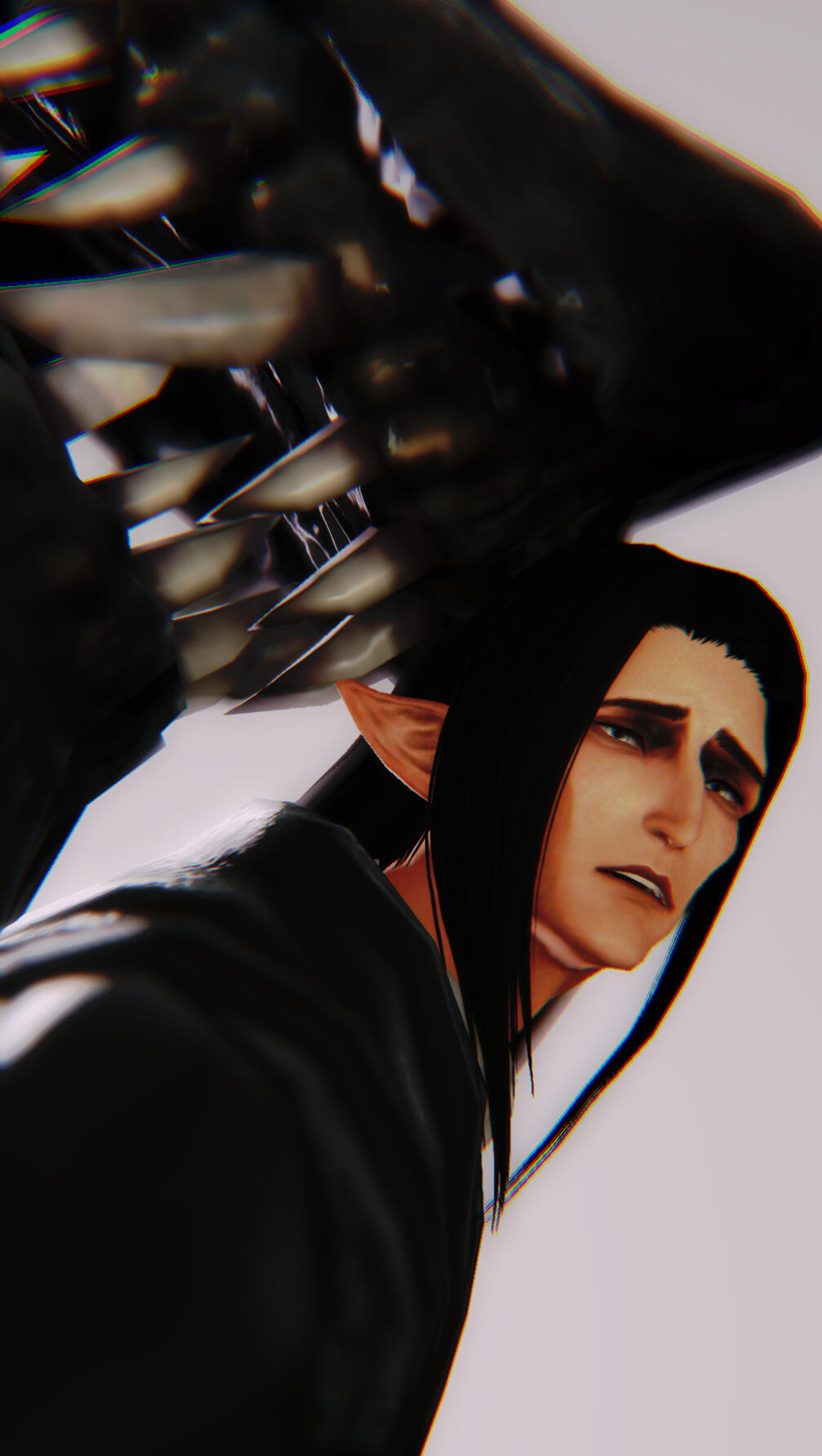 For some time now, Roderic has served as retainer to many of Ishgard's houses. He is a Scholasticate drop-out that has settled for a life of the mundane. A solitary man of few words, he spends most of his time fulfilling the many errands of his Lord and Lady. He is the watchful eye of his manor, a listener of walls, and keeper of secrets.Unbeknownst to those around him, and even Roderic himself, he is host to a parasitic entity. A voidsent that drives him to feed on the flesh and blood of others to sate its appetite for aether, often preying on the destitute that make the Brume their home. Over the years, the voidsent has embedded itself into the very fabric of Roderic's being, warping his mind and body, even his own aether—plagued by thoughts and whispers that are not his own. Even if Roderic discovered the source of his horrendous urges, the affliction is deep-seated, rooted into him like an ever-growing weed.The voidsent often lies dormant in Roderic's body until it's time to feed. It drives him mad until he's forced to hunt under the veil of night, looking for those who won't be missed. Because the voidsent's true form would draw attention, it remains just under the surface of Roderic's flesh—at the height of hunger it can manifest as multiple eyes or a wolfish maw filled with too many teeth, altering his appearance in numerous monstrous ways.